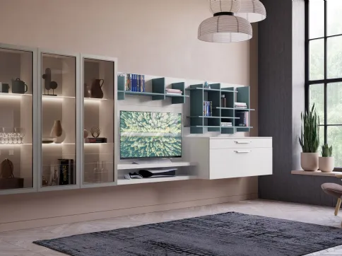 Vuoi progettare un soggiorno pratico e operativo? Ti offriamo la parete attrezzata Tablet 03 Creo dalle forme decise moderne.