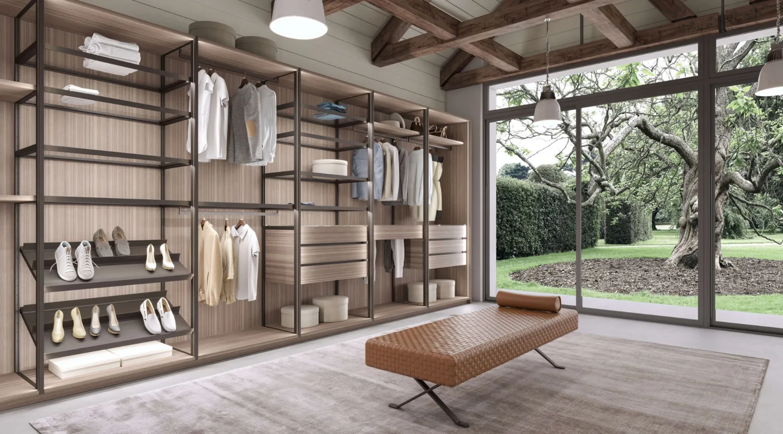 Per ultimare il concept d'arredo in una zona notte funzionale ed esteticamente gradevole, abbiamo selezionato per te le più originali e attuali soluzioni Presotto, diverse per classe, dimensione, materiale e accessori. Nella nostra collezione di Armadi cabine armadio design con ante scorrevoli troverai anche il modello mostrato in foto, pensato per chi cerca praticità e design. Contattaci e ottieni informazioni su una ricca gamma di Arredamento Casa per allestire la camera da letto utilizzando mobili contenitori in melaminico di alto contenuto estetico. Questa proposta, tra i vari modelli cabine armadio con ante scorrevoli di Presotto, è simbolo di resistenza, eleganza e raffinatezza duraturi nel tempo. Cabina Armadio Tecnopolis Free Metal Wood di Presotto: compila il form per informazioni e preventivi e progetta la tua casa come l'hai sempre immaginata.